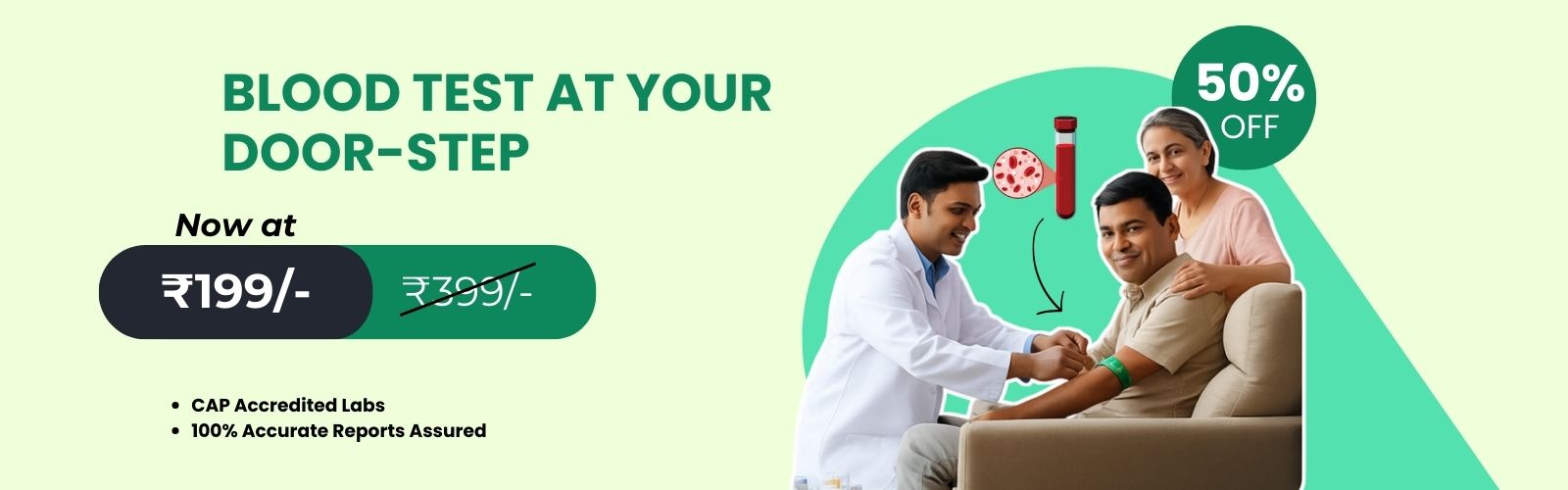 Get your lab tests done from the comfort of your home with professional sample collection.
